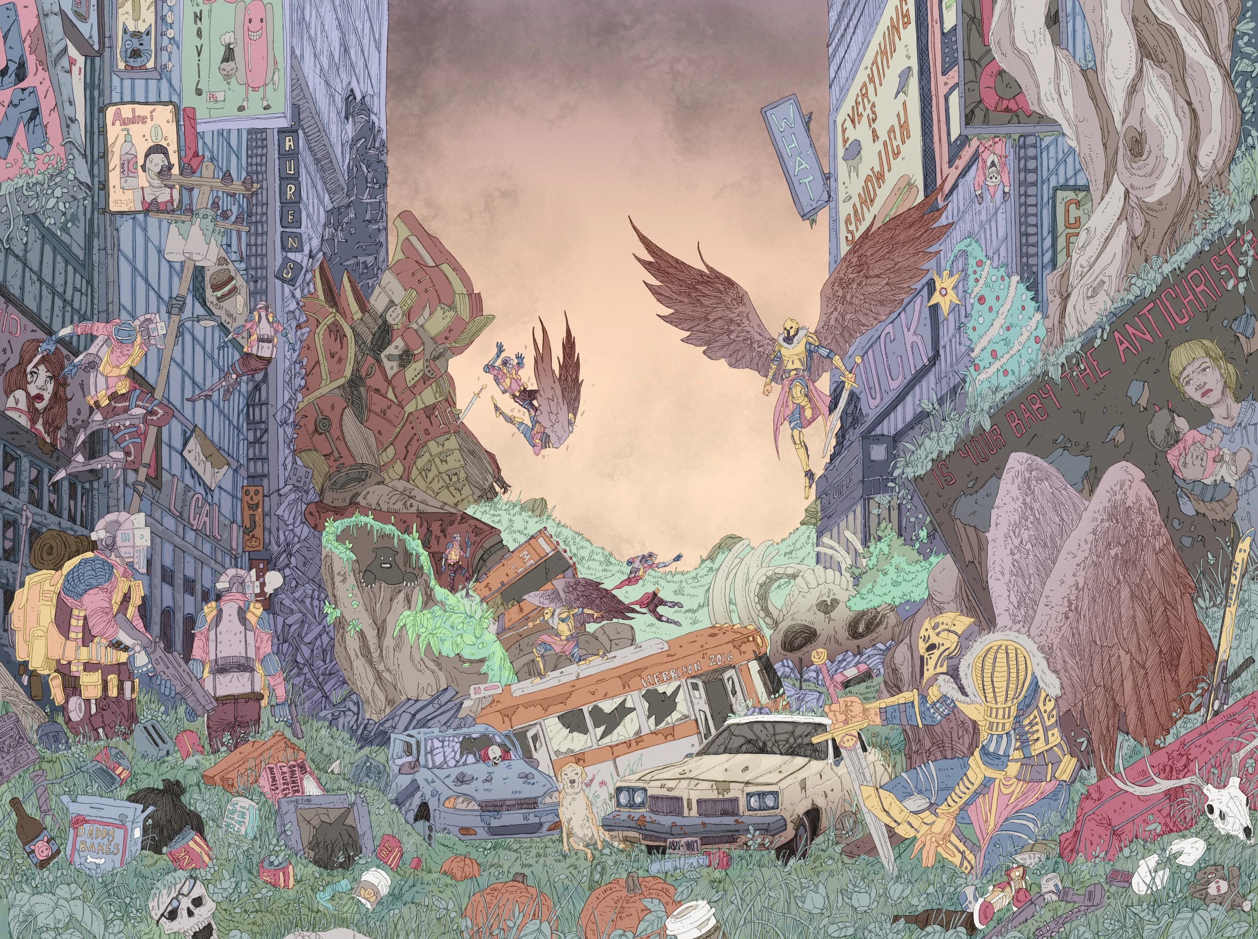 Apocalypse PuzzlePost apocalyptic nonsense I had made into a puzzle for my parents for christmasInk and Digital Color 2016 View fullsize