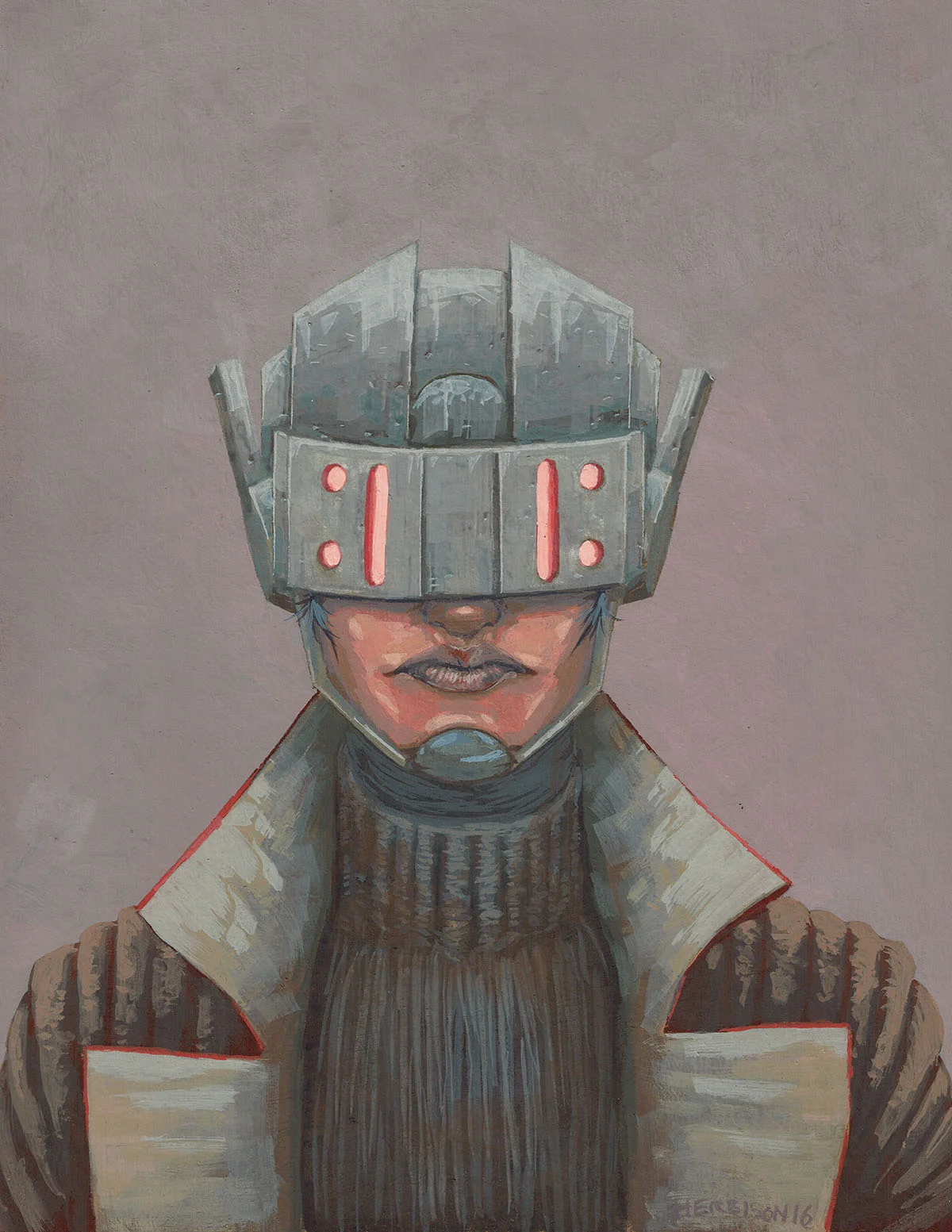 Portrait of S.P.O. Carver from my short comic, "Wake Up Call," in the anthology, "Return of Hallowzine!" Available as a Free PDF from the Store. Acryla Gouache on Chipboard, 2016