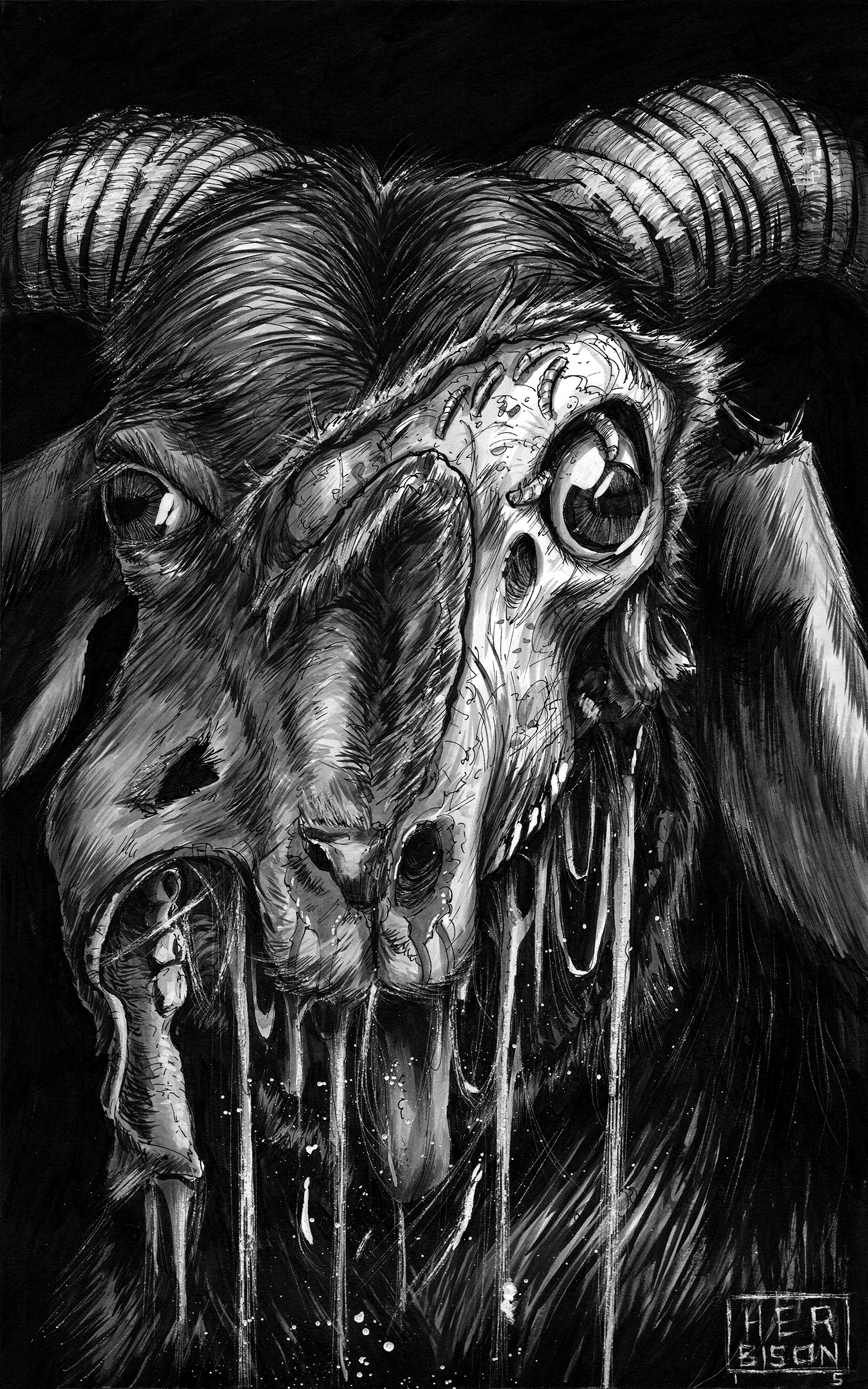 Zombie GoatIllustration for a story in the pulp fiction anthology magazine Exterus.Pen & Ink, Ink Wash 2015 View fullsize